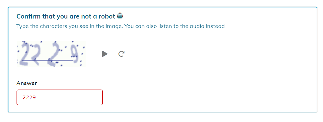 I haven’t been able to reproduce it at my end (Firefox), but a user (Chrome) just sent us this screenshot and told us that the captcha wasn’t working for them.