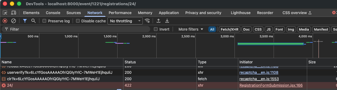 We recently installed the cloud_captchas plugin and set up Google reCAPTCHA. It works when creating an Indico profile, but not when filling out the event registration form. I fill in all the information, check the “I’m not a robot” checkbox, and click 'Register”. It resets the Captcha checkbox again, coming as a required field. I have everything running as Docker. I don’t see an error in the log files.